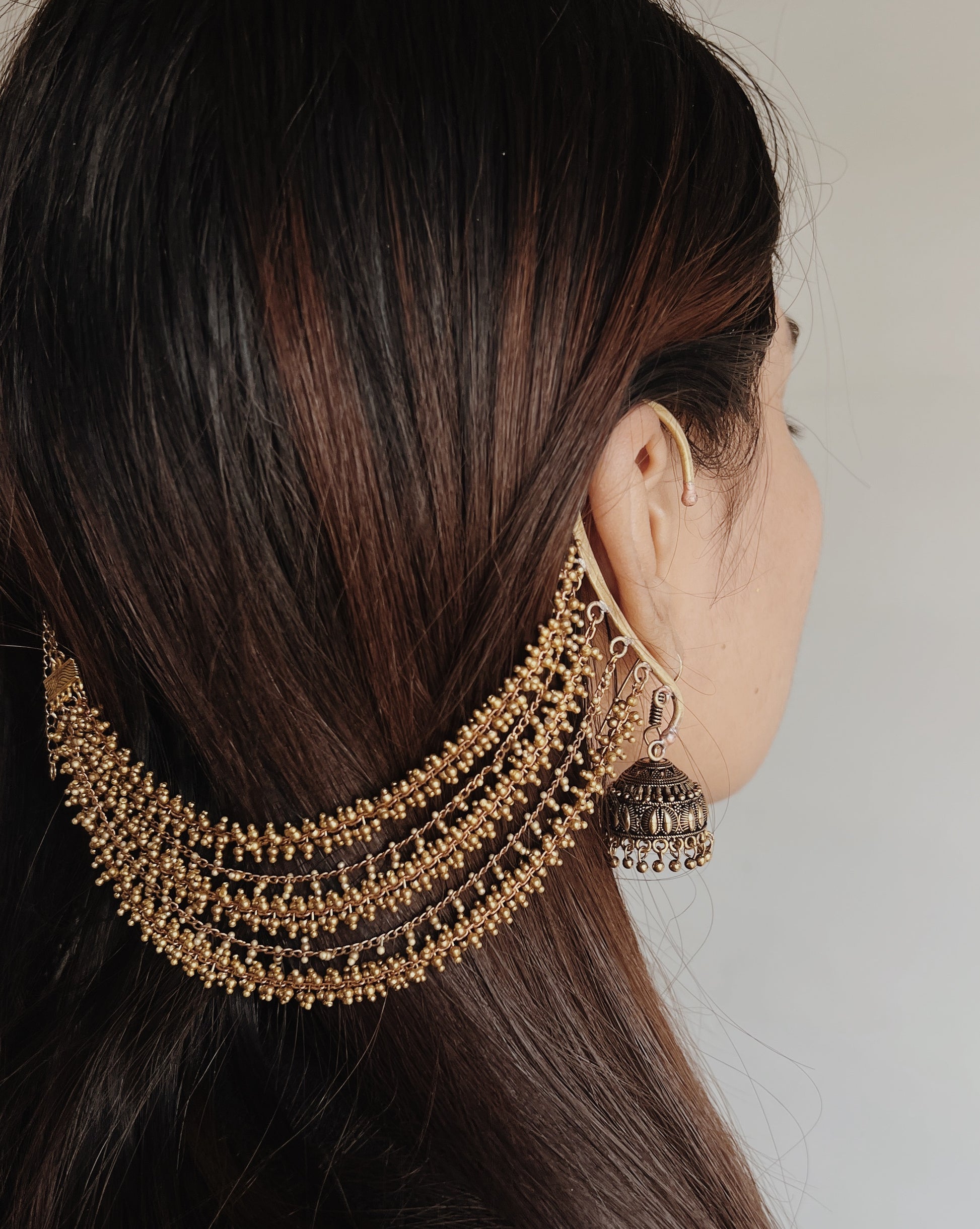 Handmade, antique finish Saharas pair with a comfortable ear cuff mechanism - no piercing needed