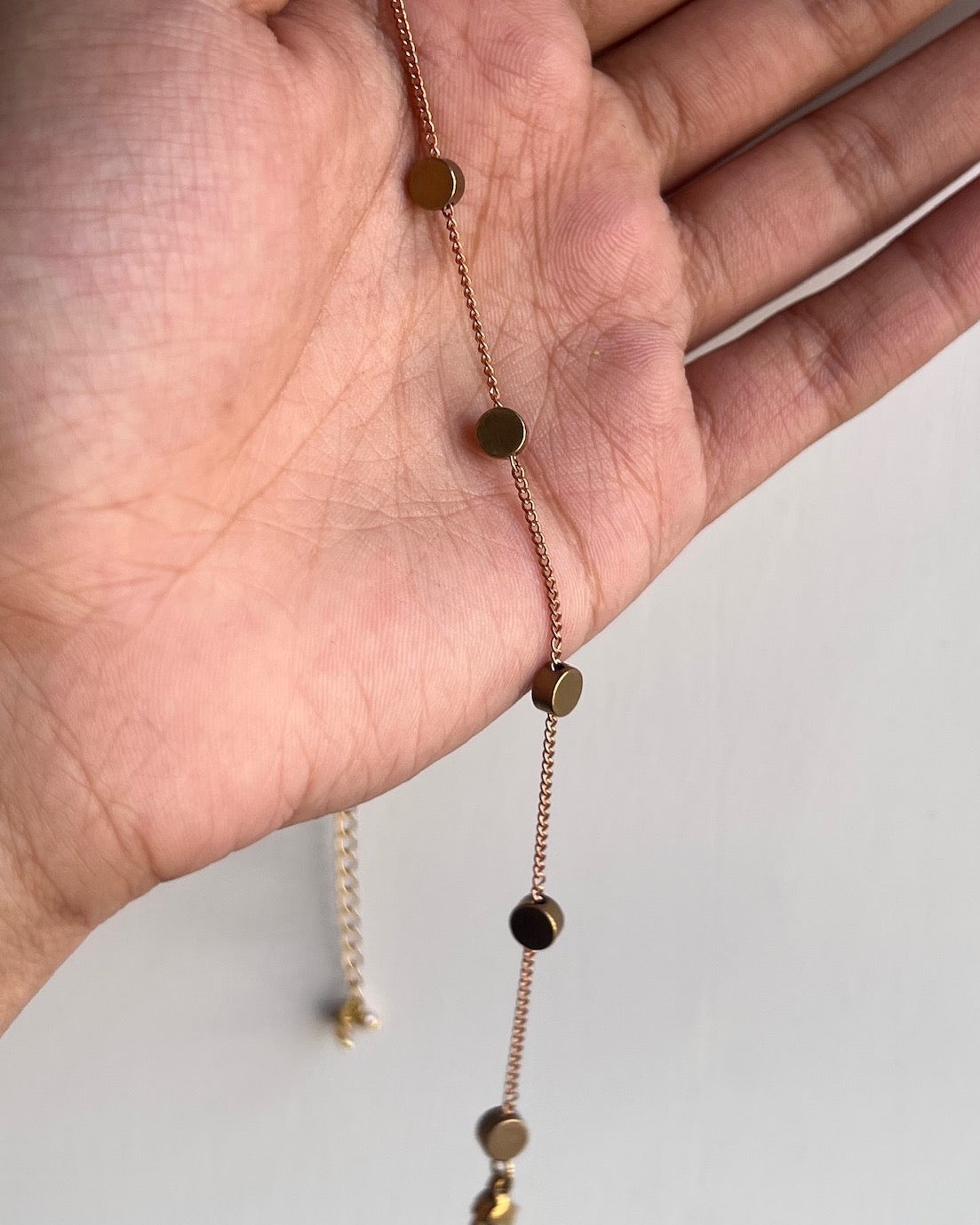 Dull, antique gold chain, adorned with matte gold bead details. Available as a necklace, bracelet and an anklet!